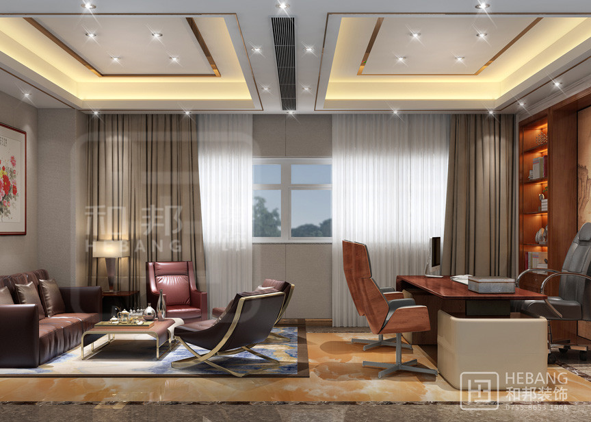 | 設(shè)計(jì)說明 | 運(yùn)用現(xiàn)代感曲線、明快色彩、精致陳設(shè)和混搭風(fēng)中式家具組合,打造出一個(gè)具有深厚文化底蘊(yùn)同時(shí)又兼具現(xiàn)代、時(shí)尚的辦公空間。 | ||||
