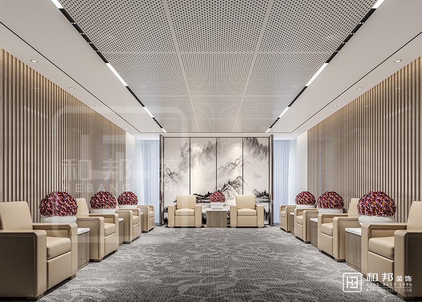 本設計在空間設計上用規整的方形,穩重的色彩,給人以莊重嚴肅的視覺感受,整體大方簡潔, 嚴肅莊重。