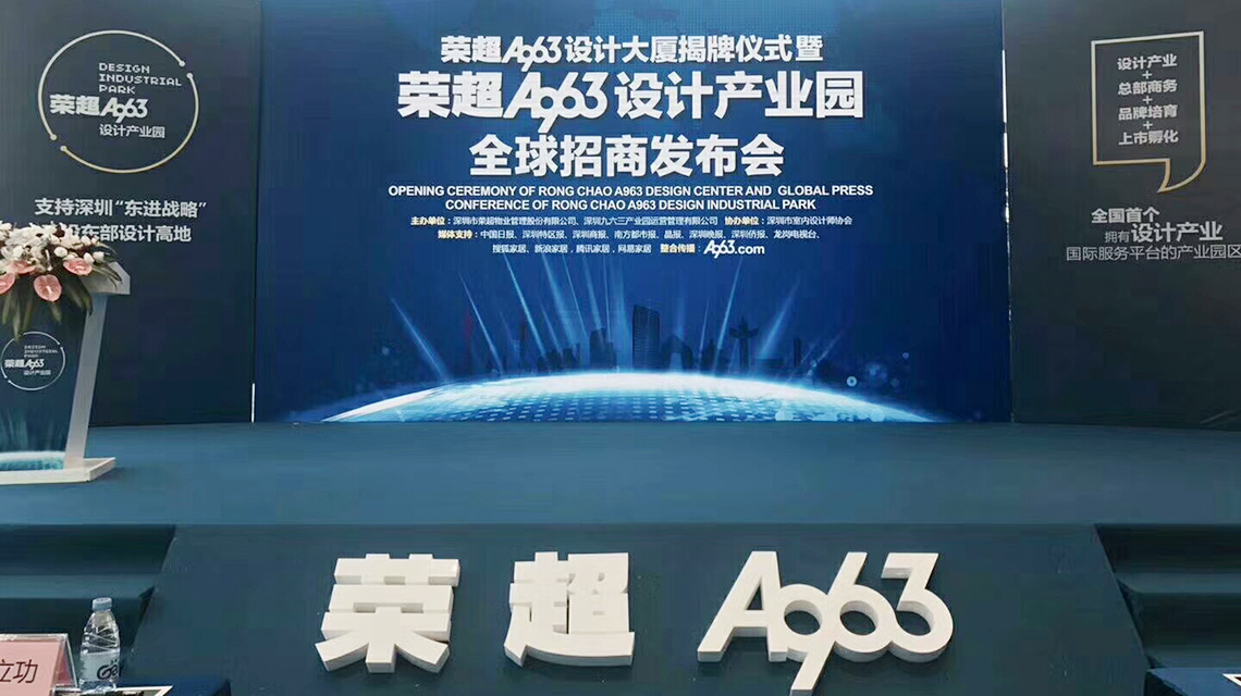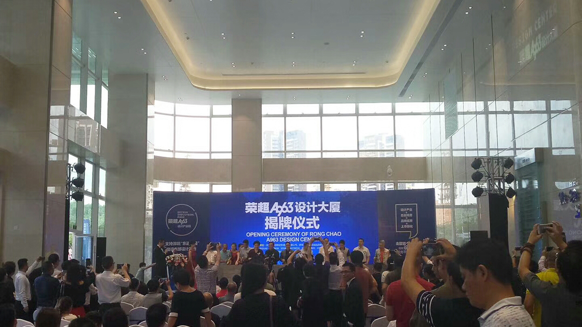 2017年9月9號,榮超A963設計大廈揭牌儀式暨榮超A963設計產業園全球招商發布會隆重召開,市區政府相關領導、設計協會負責人、設計企業家、和邦裝飾創始人劉擁軍先生及一眾杰出設計師代表蒞臨現場共同見證這一盛舉。榮超A963設計產業園落戶龍崗,打造全國性設計企業總部基地。文化創意產業對于提升城市品位、改善城市面貌、塑造城市形象具有巨大的積極作用。